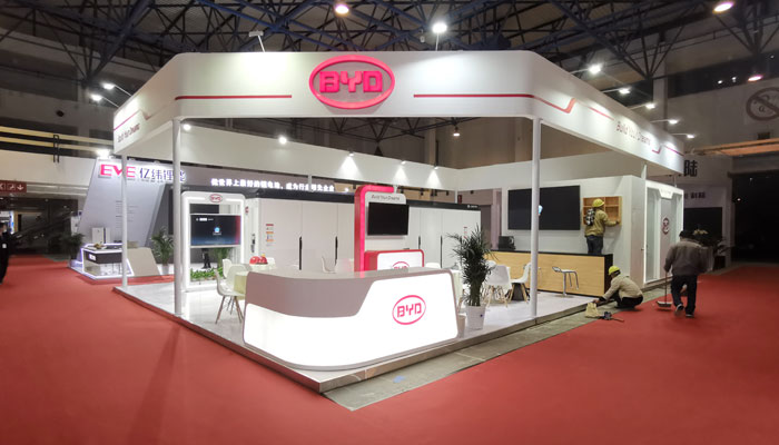 項(xiàng)目名稱:2021北京國際清潔能源展 舉辦地點(diǎn):北京?中國國際展覽中心 合作企業(yè):比亞迪 面積:100㎡展會搭建方案