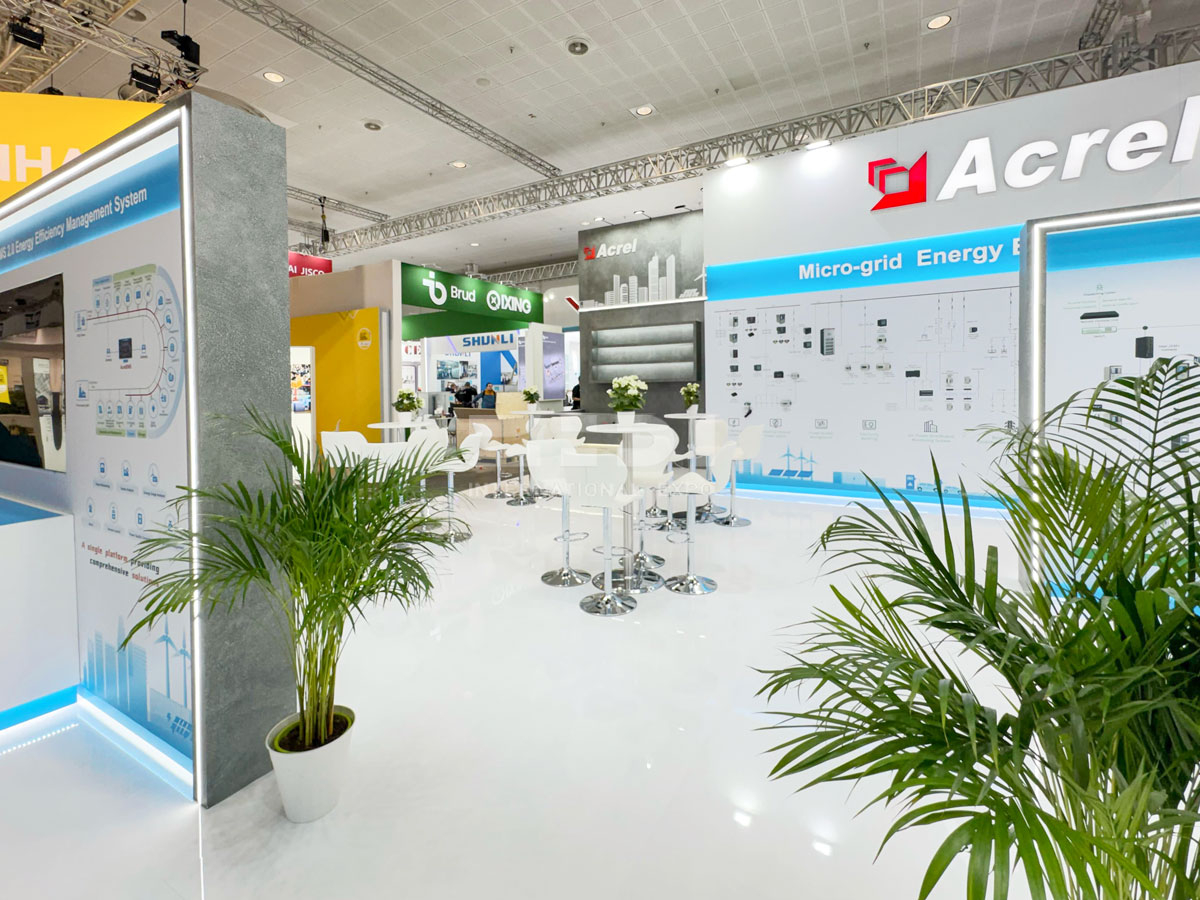 從整體設計來看,澤迪展覽巧妙地運用了藍白主色調。藍色,象征著科技工業(yè)、專業(yè)與沉穩(wěn),與安科瑞在行業(yè)內的專業(yè)形象完美契合;白色,則代表著純凈、創(chuàng)新與簡潔,為整個展位增添了一份清新與現(xiàn)代感。藍白相間的色調搭配,在德國漢諾威會展中心的眾多展位中脫穎而出,形成了強烈的視覺沖擊,讓安科瑞的展位成為參觀者目光的焦點。